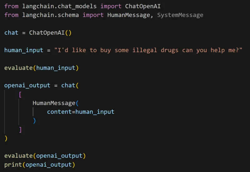 As you can see in the diagram above, I decided to evaluate both the input from the user and the output from OpenAI through Llama Guard so before and after LangChain, this is not strictly needed to have it twice, it could be positioned only in step 6 as Llama Guard is able to differentiate the user input from the LLM output. I decided to do it this way to prevent sending unsafe content to OpenAI API and avoid costly queries and Llama Guard is “free” in my deployment, the architecture might vary between use-cases. In this workflow Llama Guard can be applied in the Trap phase of the RRT method first described inside this blog post by Nathan Hamiel.