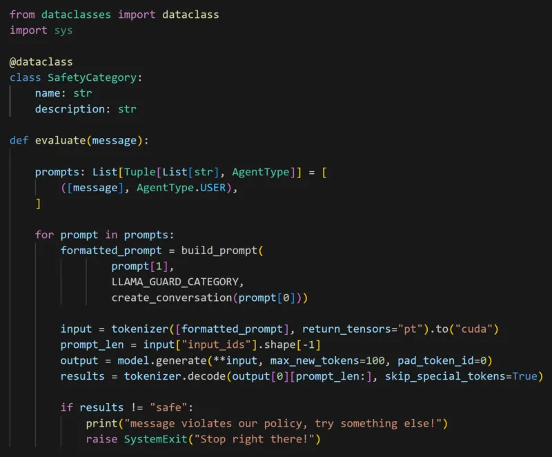 - Output will be evaluated by the Llama Guard LLM again.