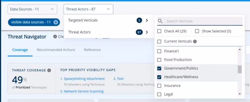 - What if you operate in more than one industry vertical and you believe that some Threat Actors are targeting you in particular? The Threat Navigator allows you to change those parameters and review how it modifies your gaps.