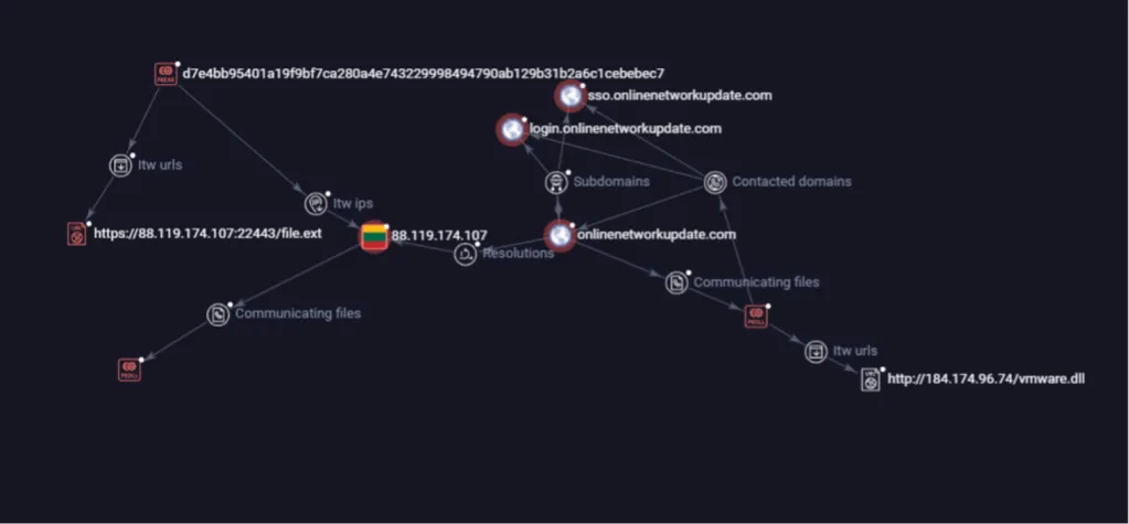 Interestingly, although this beacon was delivered from 88.119.174.107, its internal configuration pointed to a different C2 domain: networkmaintenanceservice[.]com