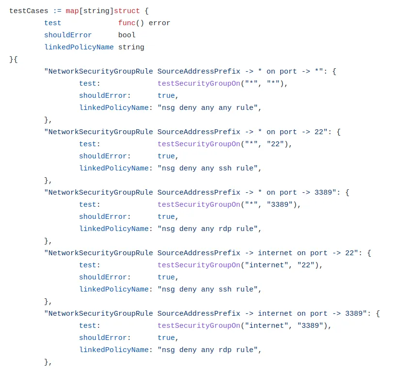 Here’s an extract of the testing scenarios for the forbidden NSGs (full code here).