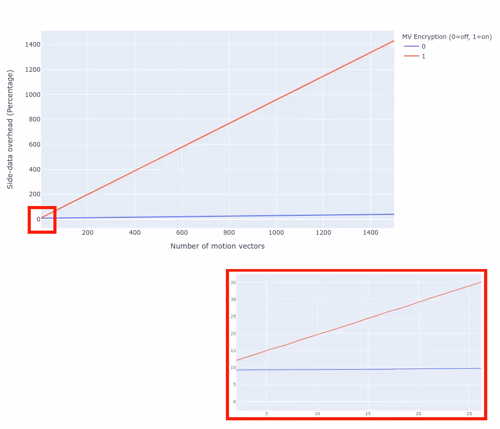 Encryption of the motion vectors was successfully added to the prototype. We have shown that such encryption adds little overhead with small numbers of motion vectors and allows to stream a 30 fps 1080p video in real time. There is even room left for streaming up to 60 frames per second without slowdowns according to our measures.
