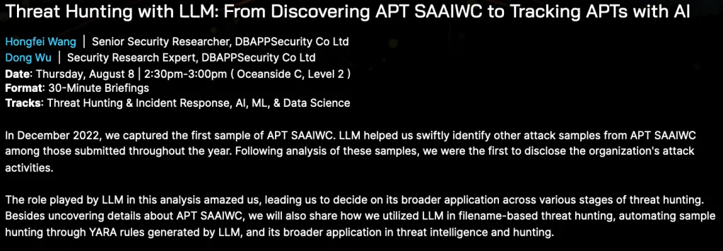 - Threat Hunting with LLM: From Discovering APT SAAIWC to Tracking APTs with AI