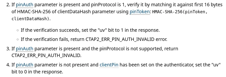 There is another issue as well. If the clientPin was set but a authenticatorGetAssertion