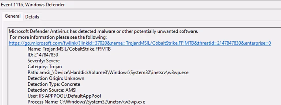 Our adversary subsequently re-exploited the vulnerability to deploy password-protected webshells in multiple locations within the application including the “/Images” directory, in-memory Godzilla webshell, along with other post-exploitation tools such Cobalt Strike. Many of these attempts were blocked by the antivirus solution.