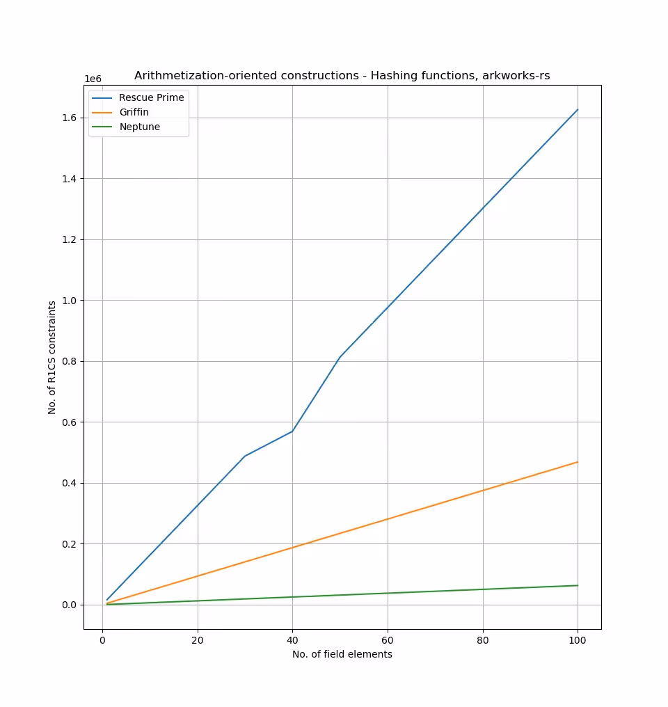 - In many cases, the performance of arithmetization-oriented schemes is analysed on the basis of a theoretical number of constraints that will be used to represent them in the targeted proof system. This approach doesn’t take into consideration the possible difficulties when implementing the scheme for a specific proving system. They are typically not implemented in either a domain specific language or a state-of-the-art library. Another issue is that, with the existing libraries, the newest schemes are not provided (for example, Poseidon in Halo2 , Poseidon and MIMC in circomlib). Therefore, there is a need to implement them to further study their performance.