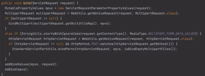 Basically, when a request comes in the servlet, it gets dispatched until it reaches ServletModelAttributeMethodProcessor, a Servlet-specific ModelAttributeMethodProcessor that applies data binding through a WebDataBinder of type ServletRequestDataBinder. ServletRequestDataBinder tries to bind the values as show below.
