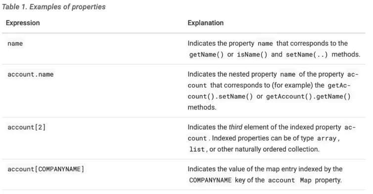 JavaBeans specify conventions to indicate objects’ properties. The following table lists examples of these conventions.