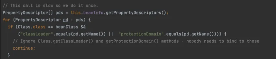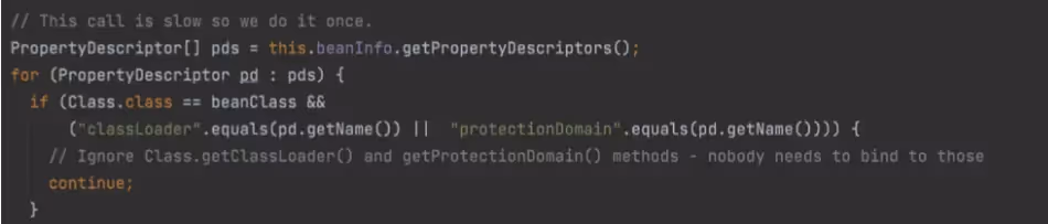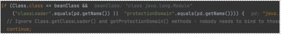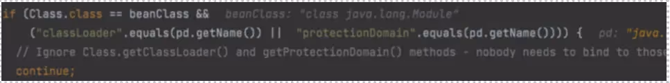 In fact, to refuse access to classLoader and protectionDomain child properties, Spring checks for “class.classLoader” and “class.protectionDomain” ( see condition below: Class.class == beanClass), but the logic can be bypassed with the following property name “class.module.classLoader”.