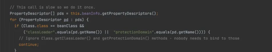 As shown above, BeanWrapperImp caches property descriptors and critical property descriptors like the one for class.classLoader… could be resolved.
