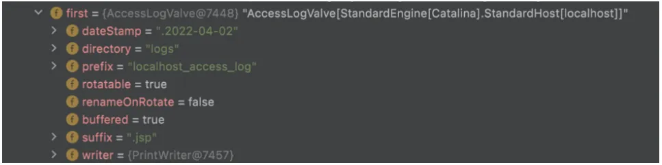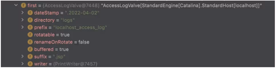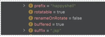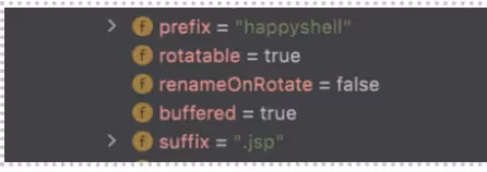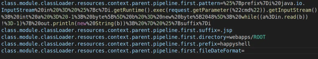 A file will be written to: webapps/ROOT/happyshell.jsp and it will contain the payload from the Tomcat pattern property shown below, that is, the webshell code (surfaced on the pattern property above).