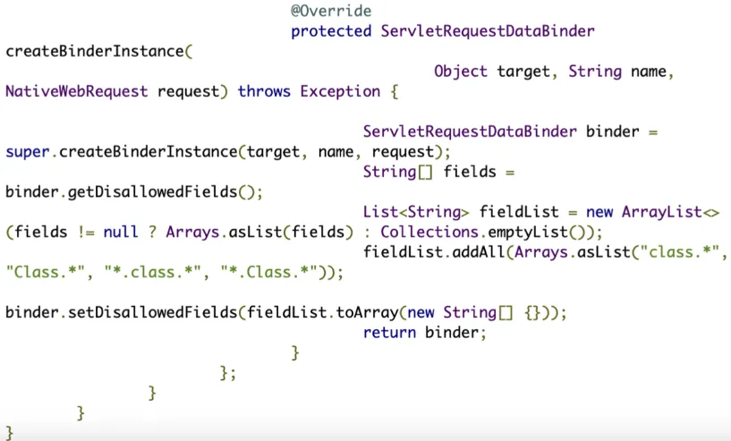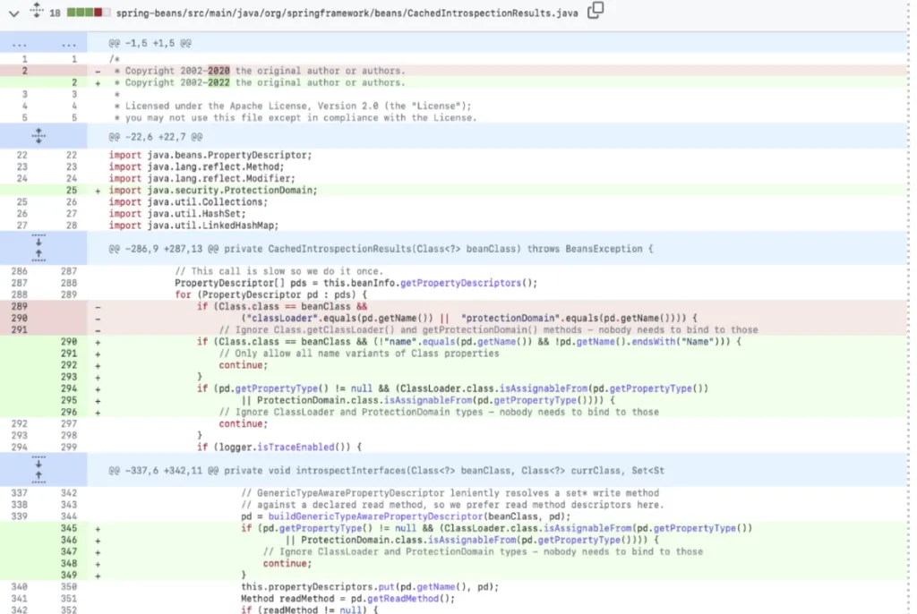 Spring made sure that that property descriptor like class.classloader and class.protectionDomain were ignored for CVE-2010–1622.