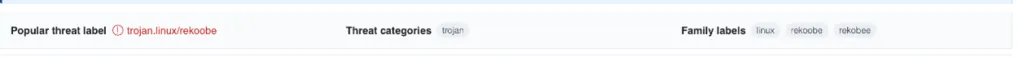 The backdoor is successfully detected by many AV engines and is labeled as trojan.linux/rekoobe (figure 6).