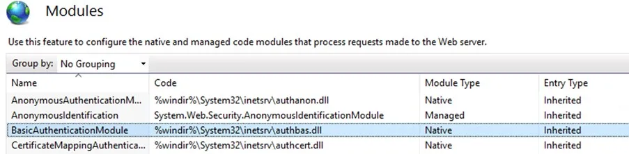 Interestingly, the stack trace showed also that authbas.dll was involved. As shown in figure 13 below, this proves that this dll was responsible for the IIS BasicAuthenticationModule