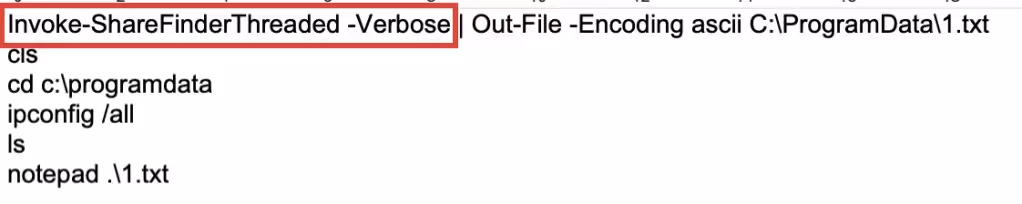From the Exchange server, the threat actor then used Nmap/Zenmap to scan the network and powershell, and then to enumerate the shares in the domain using Invoker-ShareFinderThreaded from PowerView.