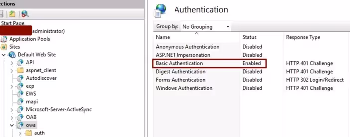 Regarding the credentials stolen from IIS Basic Authentication by using Outlook on the Web. It is enabled by default and is necessary for OWA/ECP to work (Figure 17).