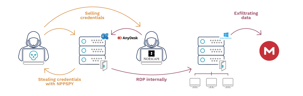 Initial triage of forensic collections revealed that the on-premise Exchange server played a central role in the threat actor’s operation by being the source of the RDP internal lateral movement.