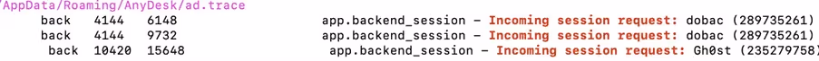 The first sign of persistence we found was AnyDesk. This was installed as a service on some selected servers. Upon inspecting the logs, we confirmed that in addition to the VPN access, which they were already exploiting, the attackers were coming in via Anydesk (See Figure 19).