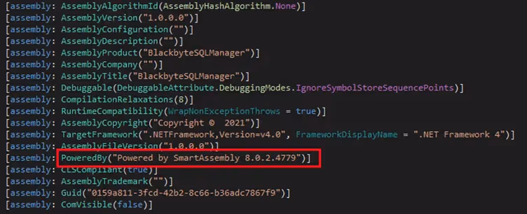 The tool is a .Net assembly, which appears to have been obfuscated with SmartAssembly (see Figure 13).