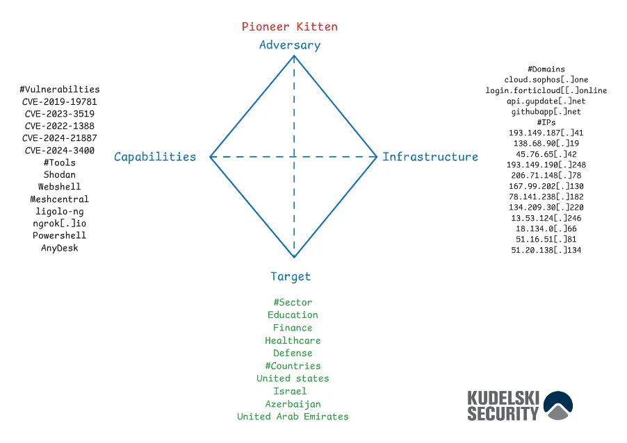 From the IPs we can see from this campaign, all of them have been attributed to the Iranian group Pioneer Kitten, UNC757. They have conducted numerous intrusions against organizations in the United States and other countries since 2017, with the majority of IPs found on this campaign; most of the IPs are linked to a hosting provider.